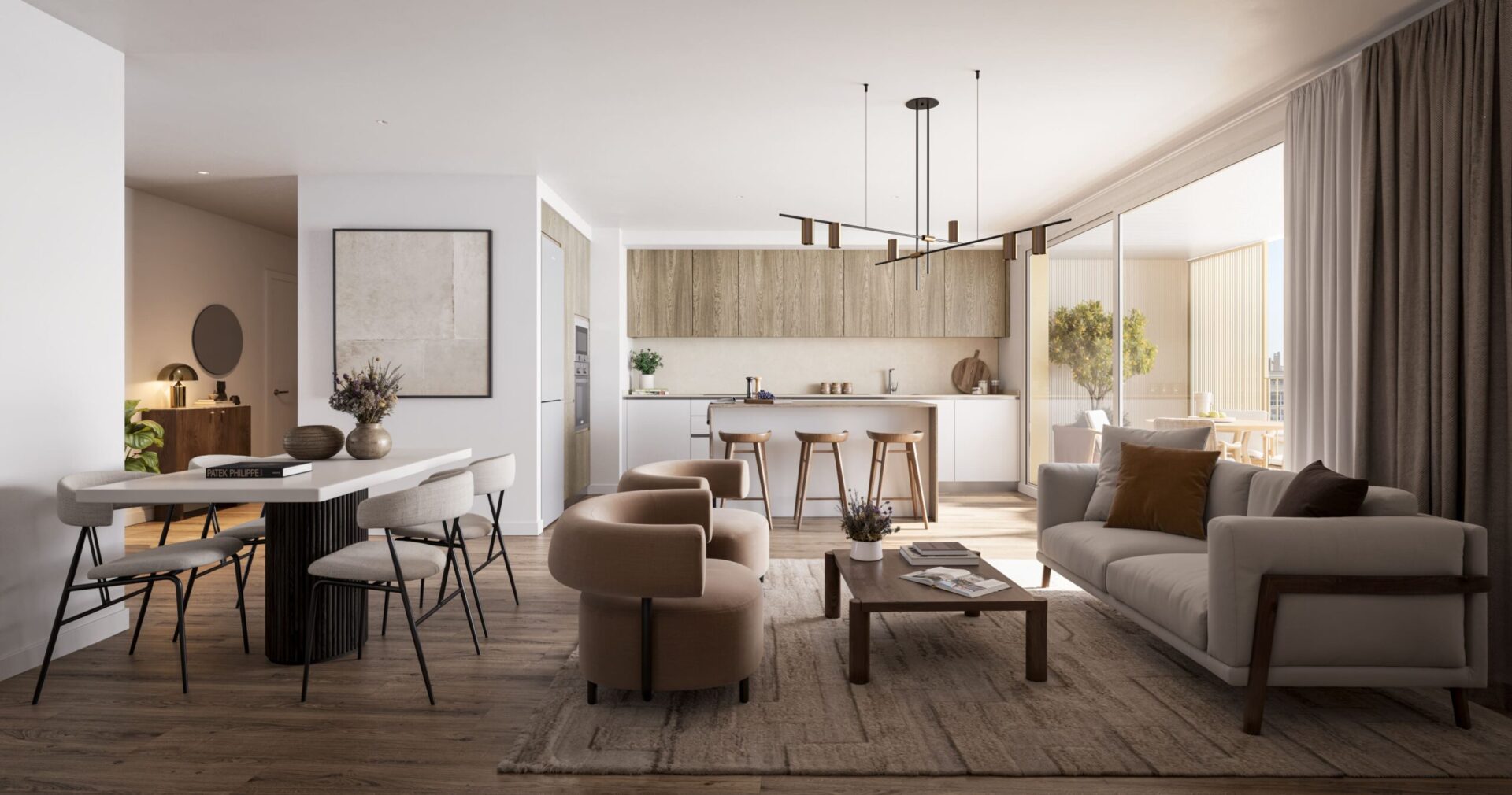 Luz Natural, con grandes ventanales de suelo a techo que integran el paisaje exterior y reducen el consumo energético.